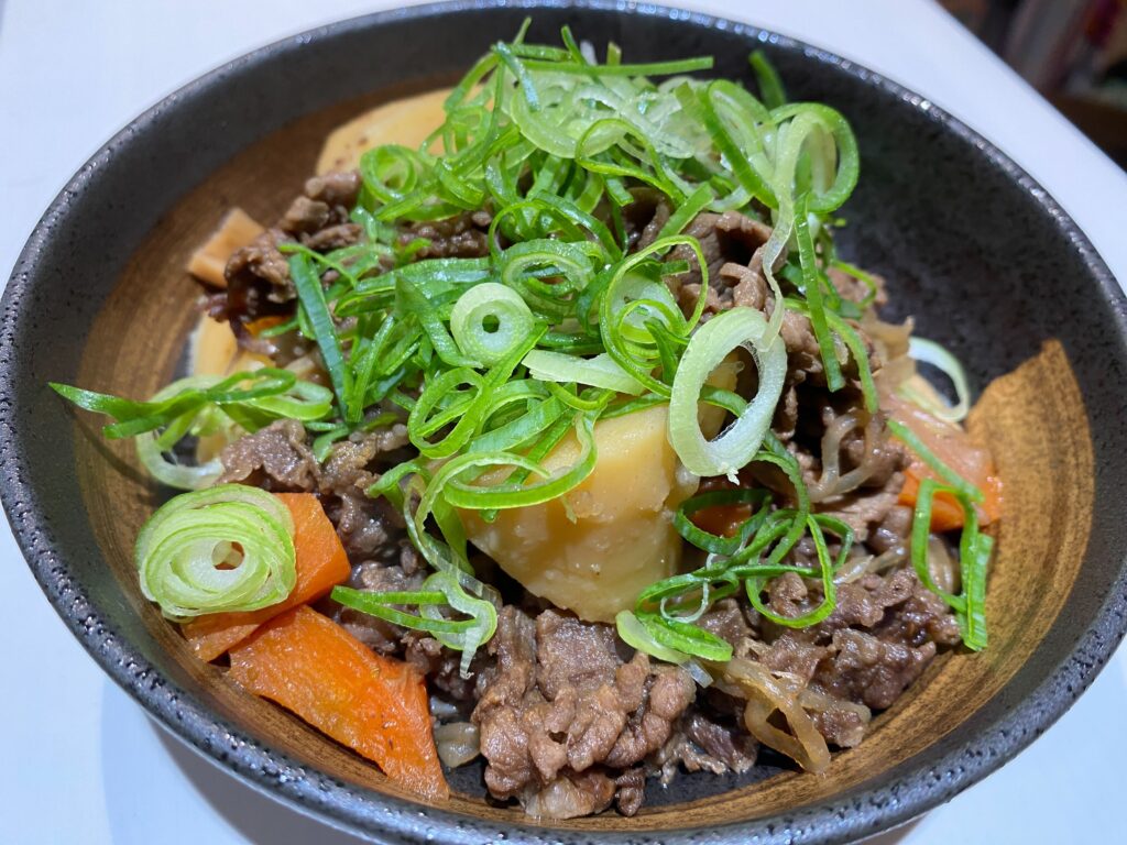 じゃがいも・にんじん・玉ねぎと合わせて醤油・みりん・砂糖で煮込むだけ。調理中から広がる甘辛い香りに、思わず食欲がそそられました。